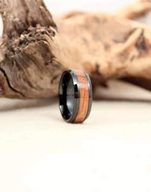 8. Bourbon Barrel Stave Oak and Black Ceramic Wooden Ring