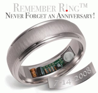 You can get a customized message printed on the inside of the ring, which will leave it imprinted on your finger when it’s taken off. Order it here.