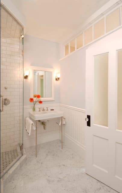 This is a great solution for a studio apartment, where chances are, the only real windows are in the living area. This way, you still get a little bit of natural light in your bathroom.